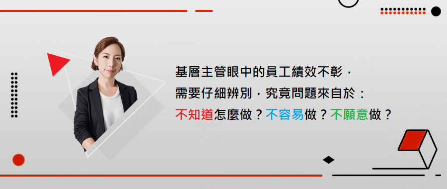 而基層主管眼中所謂的員工績效不彰,其實需要仔細辨別,究竟問題來自於: