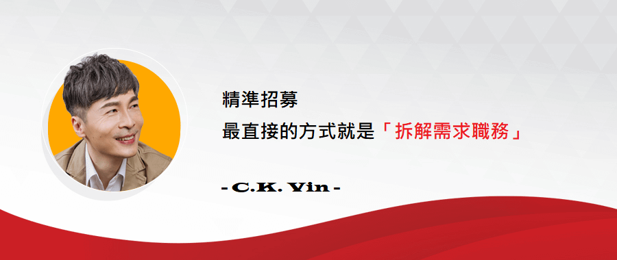 而該如何雕琢面容,集結成精確的招募目標?最直接的方式就是「拆解需求職務」,轉化為錄取的標準依據。